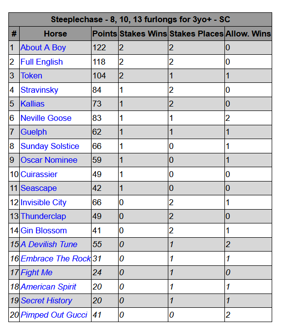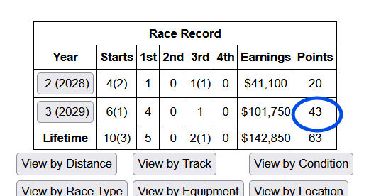 It’s not just based on points. It orders by: stakes wins, stakes places, points, allowance wins.
