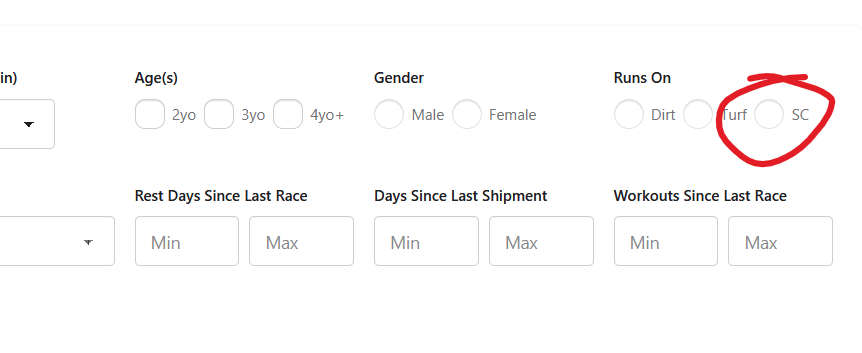 I just noticed this isn’t working either Shanthi, when you select SC and hit select the horses change, just not to SCers! Actually I think none of the ‘runs on’ is working correctly.