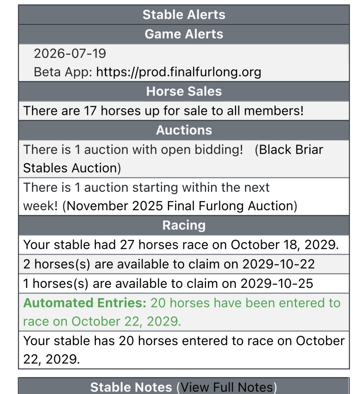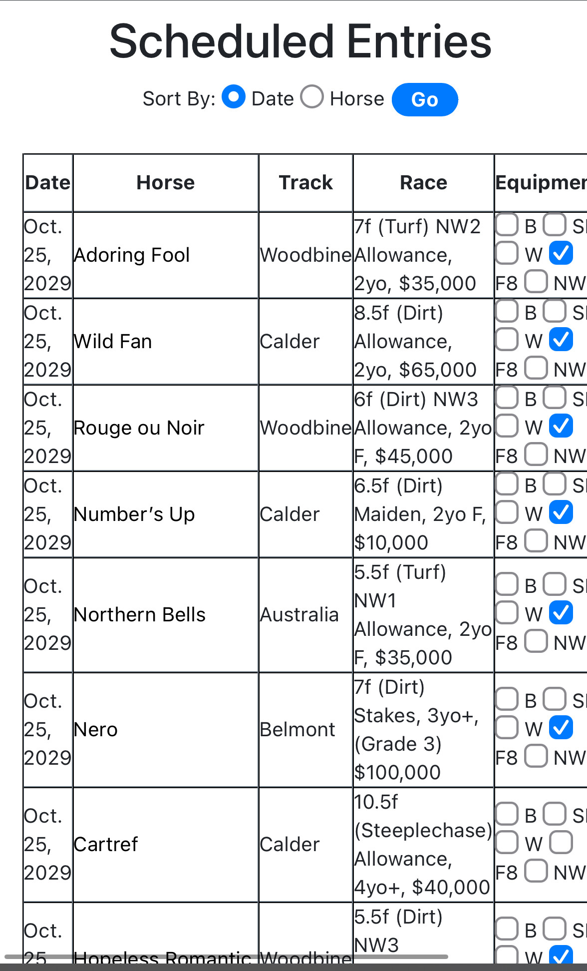 I have 8 horses scheduled for entry on the 25th October but none have been entered for races on that date.