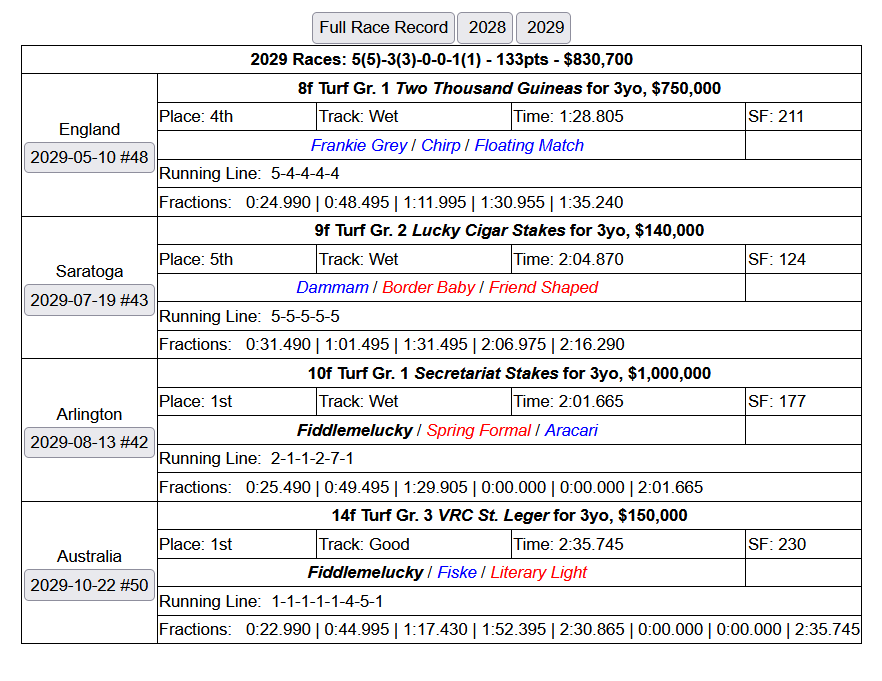 Snow Angel is also affected by a “missing race’” - race highlights have her down as the winner of the Coolmore Classic in September but it’s not showing in her race history.