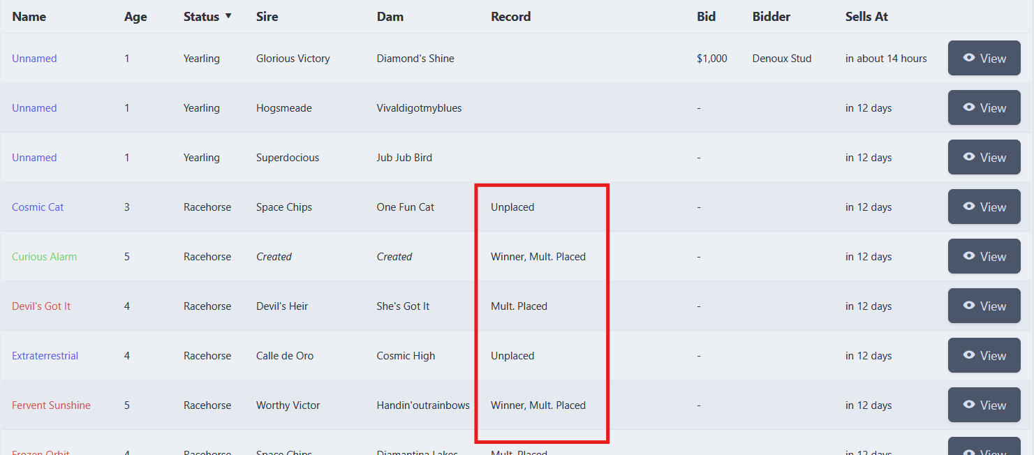 I really like the new Auction Summary page! But it could show the titles of horses on the list, and perhaps of their parents too. I think titles are generally not showing in the new app…