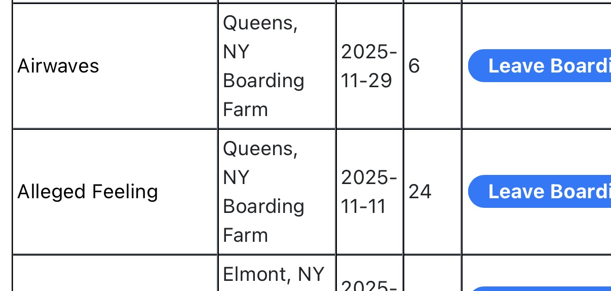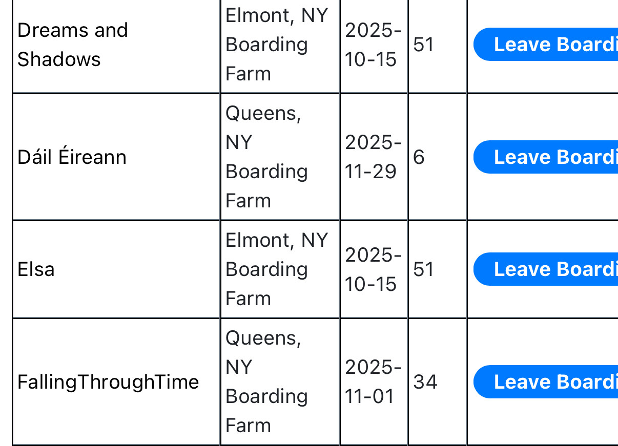 Then I have some horses who I’ve cancelled their boarding stay, they seem to be at the track and are working out but still listed as being at the boarding location. Two examples are Dreams and Shadows and Elsa.